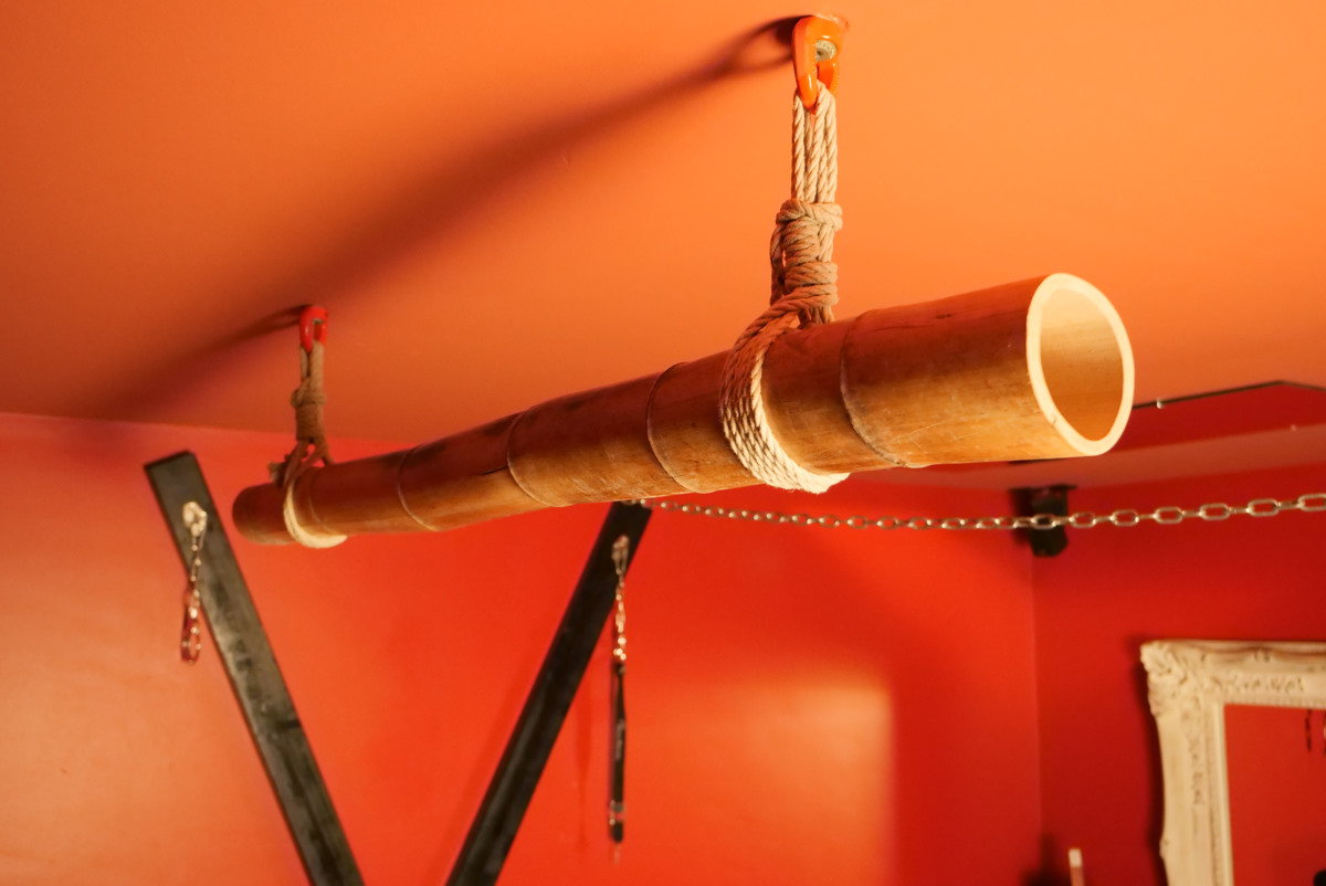 - Bambusrohr & Shibari-Ring an der Decke für Bondage-Spiele (inkl. Schutzmatte für am Boden)