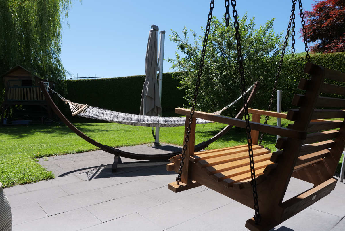 - Grosser Aussenbereich mit Sitzgelegenheit, Hängeschaukel, Hängematte usw.